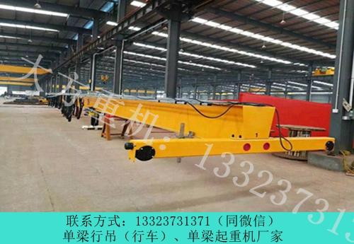 河南周口单梁行车行吊销售厂家|河南周口5吨单梁行车行吊厂家|河南周口单梁行车行吊生产厂家【大方重机】咨询电话:133 2373 1371 河南周口单梁行车行吊销售厂家主要从事桥式起重机、门式起重机、悬挂式起重机、抓斗式起重机、变频式起重机、防爆式起重机、电磁式起重机、冶金式起重机、半门式起重机、悬臂起重机、欧标式起重机、提梁机、行吊生产销售。 河南周口5吨单梁行车行吊厂家介绍单梁起重机的安装方法:作为单梁起重机中必不可少的设备,减速机的安装质量将直接影响整个起重设备的运行状态。对于单梁起重机减速器的安装,首先要确定的是减速器的安装,一般根据驱动装置的结构和尺寸来确定。