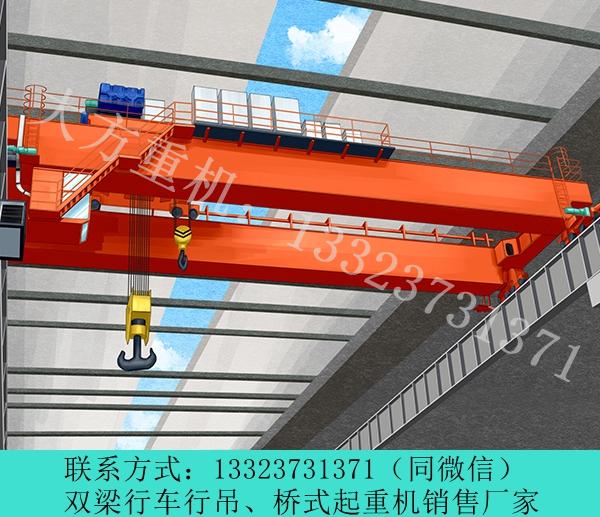 陕西渭南双梁行车行吊销售厂家,陕西渭南10吨双梁行车行吊厂家,陕西渭南冶金双梁行车行吊厂家【大方重机】133 2373 1371专注行车行吊,桥式起重机,门式起重机,欧式起重机,单梁起重机,双梁起重机的制造及销售,免费现场测量设计方案,根据您的要求非标定制,设备真材实料,结实耐用. 陕西渭南双梁行车行吊销售厂家从事桥式起重机、门式起重机、悬挂式起重机、抓斗式起重机、变频式起重机、防爆式起重机、电磁式起重机、冶金式起重机、半门式起重机、悬臂起重机、欧标式起重机、提梁机、行吊生产销售。 陕西渭南10吨双梁行车行吊厂家双梁桥式起重机有哪些分类??? 大致可分为通用桥式起重机,冶金桥式起重机,抓斗桥式起重机,电磁桥式起重机,双小车桥式起重机。 双梁桥式起重机主要由桥架、大车运行机构、小车、电器设备等组成。根据使用频繁程度不同,分为A5、A6、A7三种工作级别。吊钩桥式起重机动作操纵全部在司机内完成。双梁桥式起重机主要参数:起重量:5~10吨,16/3.2~50/10吨,75/20~/20吨,/32吨/30~/50吨,/40吨,/75吨,/80吨,/吨跨度:10.5~31.5米,13~31米。起升高度:6~22米。