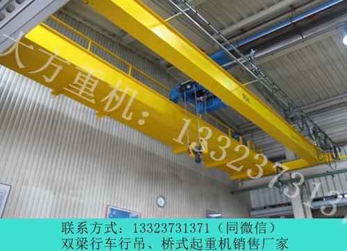 3、反复的开关以及反向的操作,这样双梁行车配件电机一直处于大电流的状态,是会影响其使用寿命。4、卸载太过频繁,在设备每天的操作之后或者是一段时间之后,拆卸电机检查是的,如果卸载过于频繁会损坏其部件。5、双梁行车不能长时间不维护,这样会影响其配件的性能,减少使用寿命,给使用带来安全隐患。 河南商丘双梁桥式行车行吊厂家生产销售的双梁行车外形象一个两端支承在平行的两条架空轨道上平移运行的单跨平板桥。一般由机械、电气和金属结构三大部分组成。机械部分:分为三个机构即起升机构、小车运行机构和大车运行机构。起升机构是用来垂直升降物品,小车运行机构是用来带着载荷作横向移动;大车运行机构用来将起重小车和物品作纵向移动,以达到三维空间里做搬运和装卸货物用。公司网站:www.longmendiaocz.com